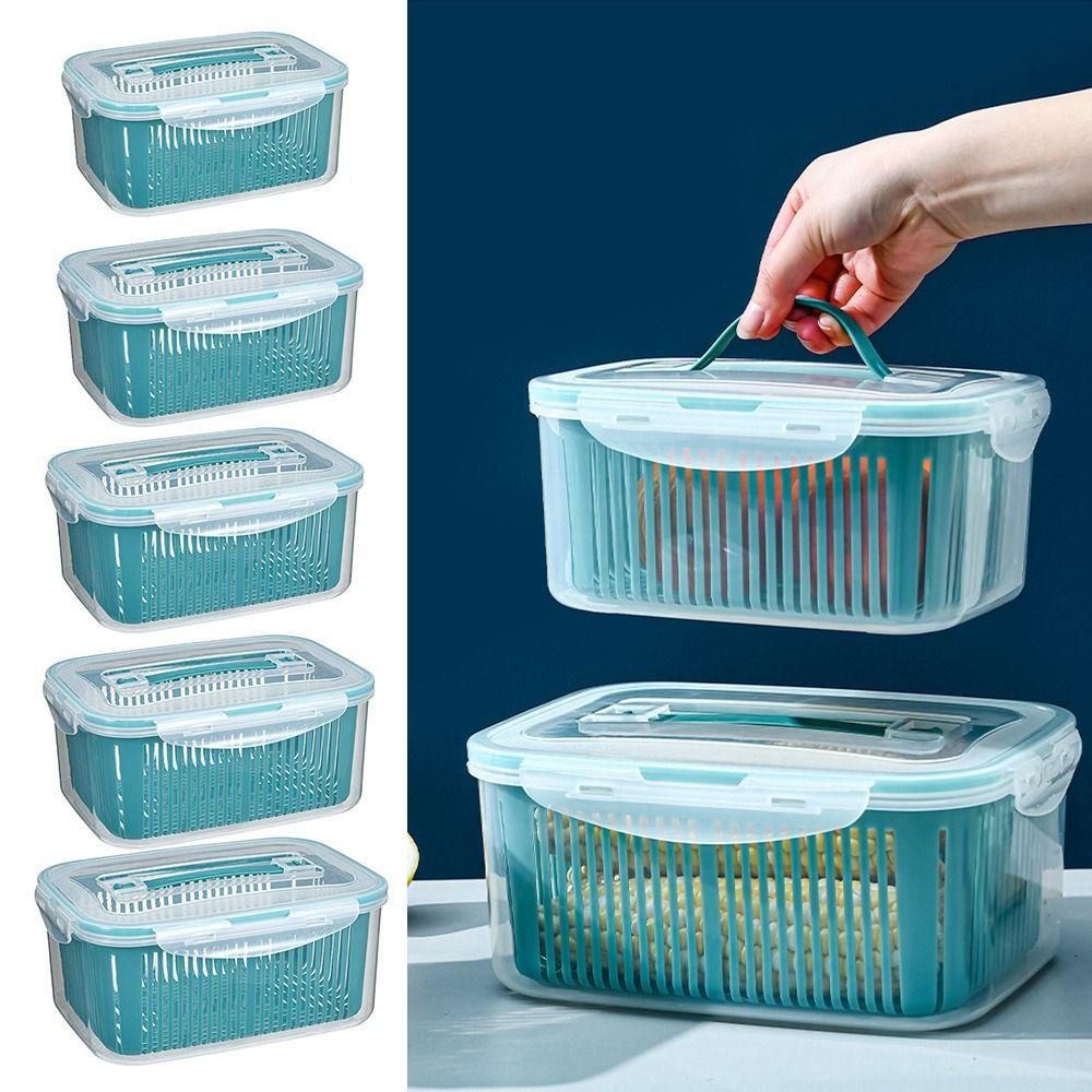 Сохраняйте фрукты и овощи свежими:Производим контейнеры для хранения продуктов для холодильника, по сравнению с обычными контейнерами для хранения продуктов, каждый из наших контейнеров для хранения продуктов оснащен съемным дуршлагом, который может эффективно отделять фрукты или овощи от воды, может дольше хранить свежие продукты