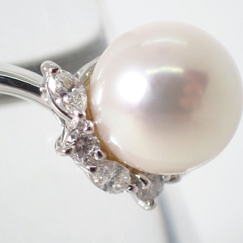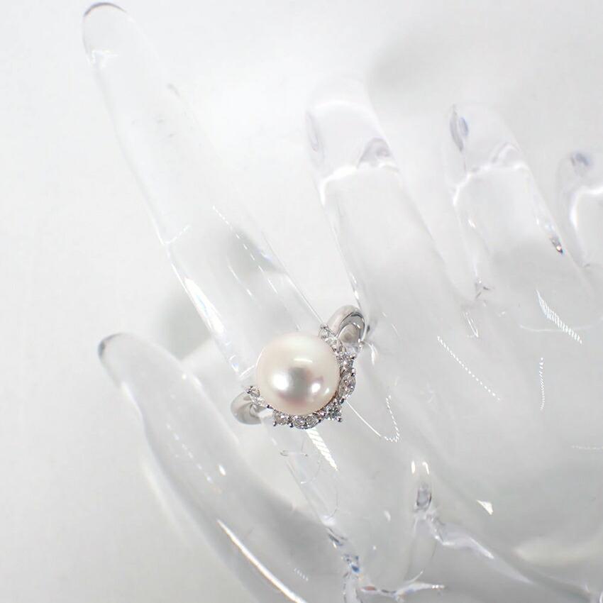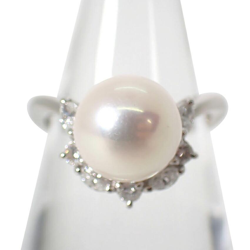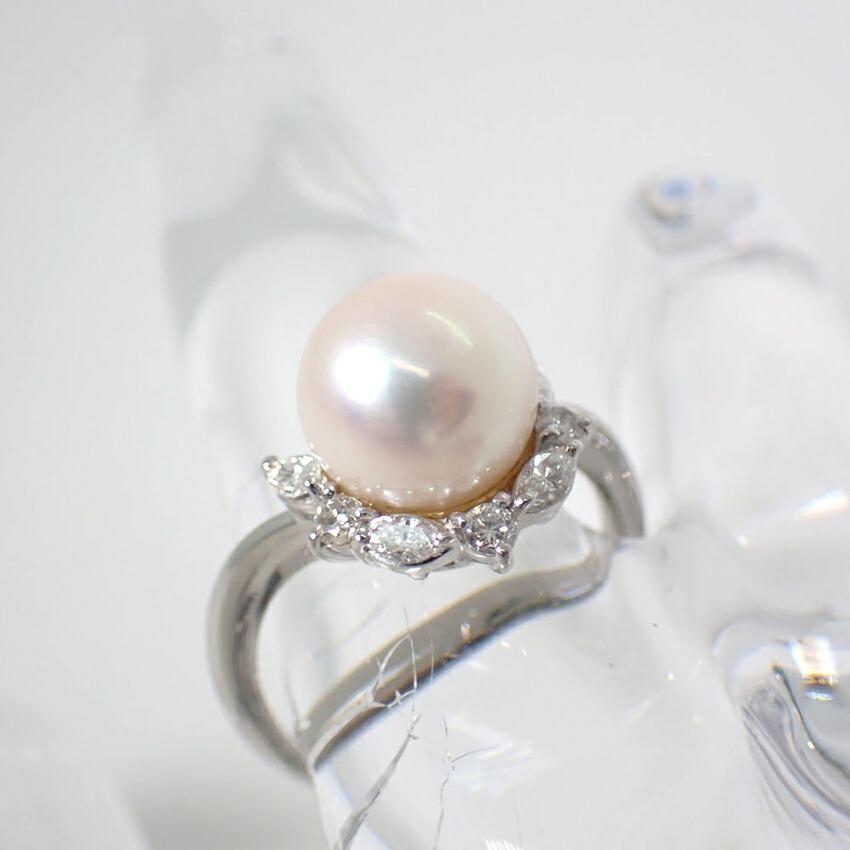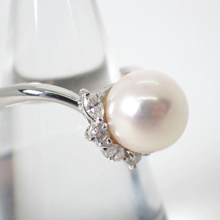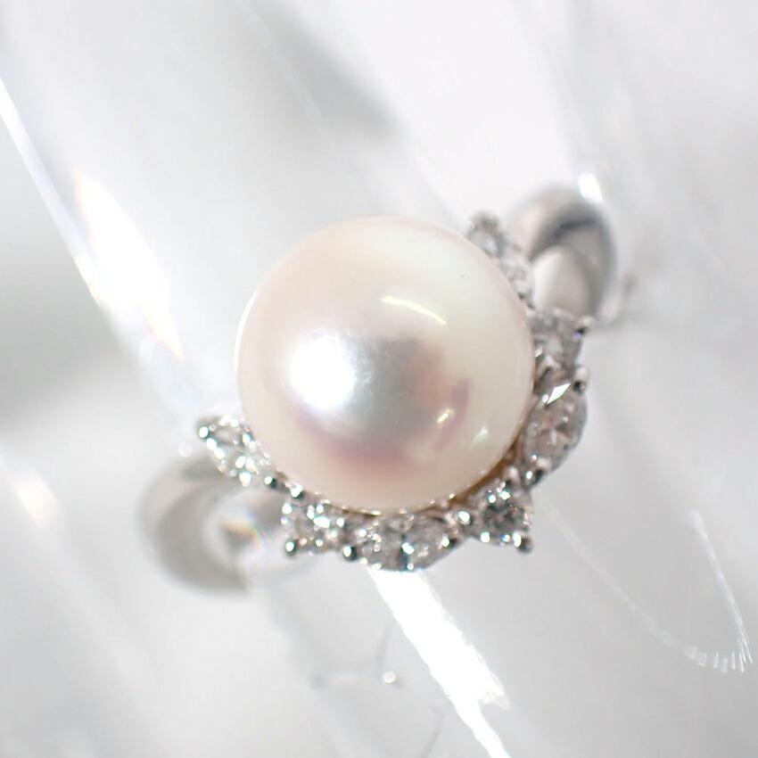 [Использованный] Pt900 Akoya Pearl (жемчужный) бриллиантовое кольцо/Нет. 11/г465-81