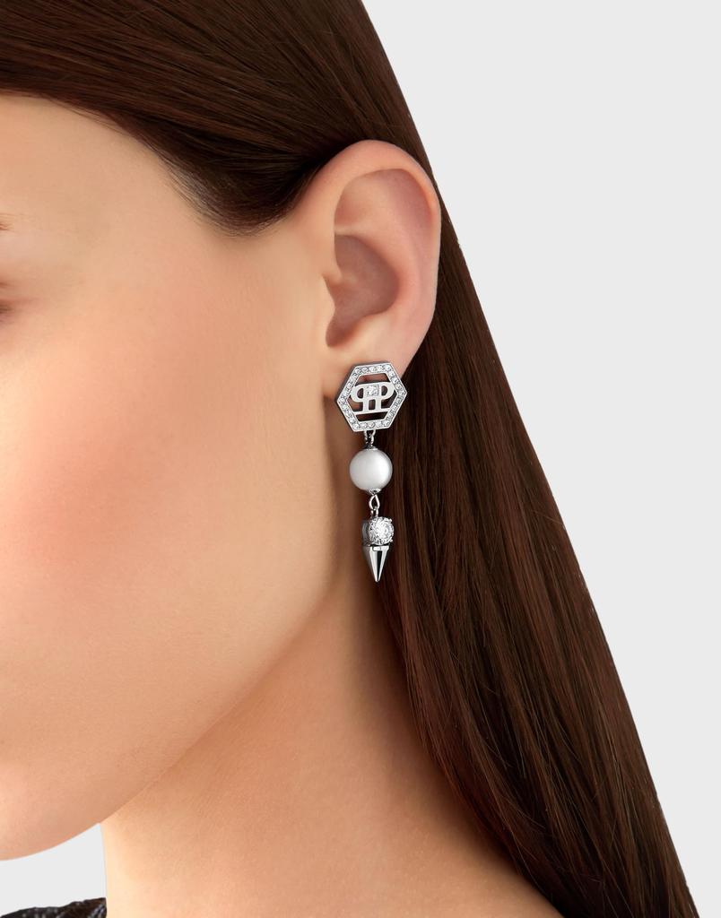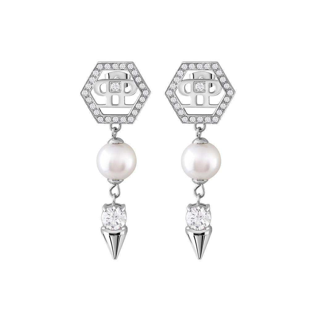 PLEIN Аксессуары Серьги Philipp Plein Jewelry SPIKED PEARLS PJ8EA07EU SPIKED PEARLS серьги-капли из нержавеющей стали с кристаллами Серебристый Нержавеющая сталь