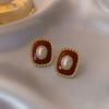 Винтажные капающие масляные винно-красные ретро-серьги-гвоздики для женщин, корейские жемчужные цветочные геометрические серьги в форме сердца, ювелирные изделия высокого качества