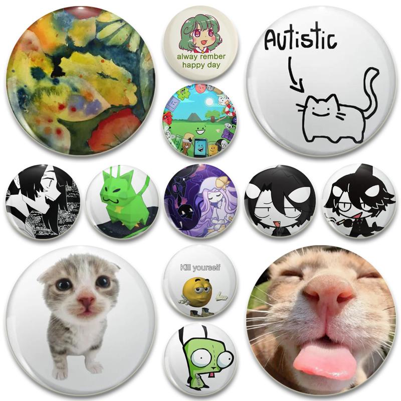32/44/58 мм милые значки аниме-сериала забавный значок кота енота интересные мультяшные животные броши рюкзак одежда подарок аксессуар