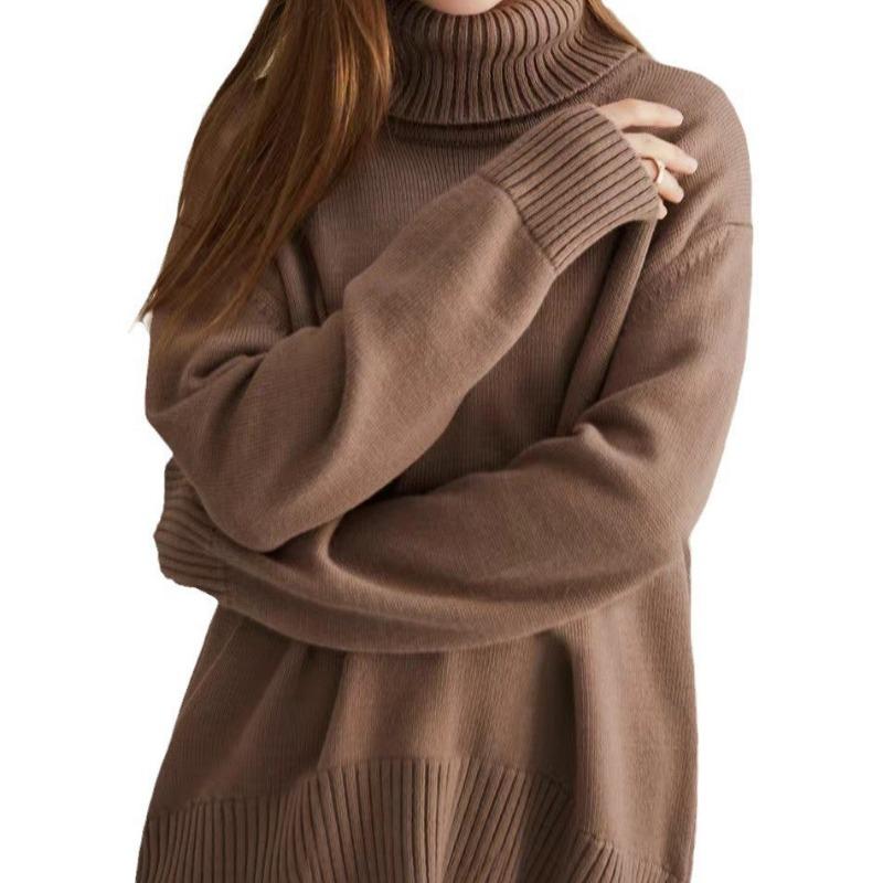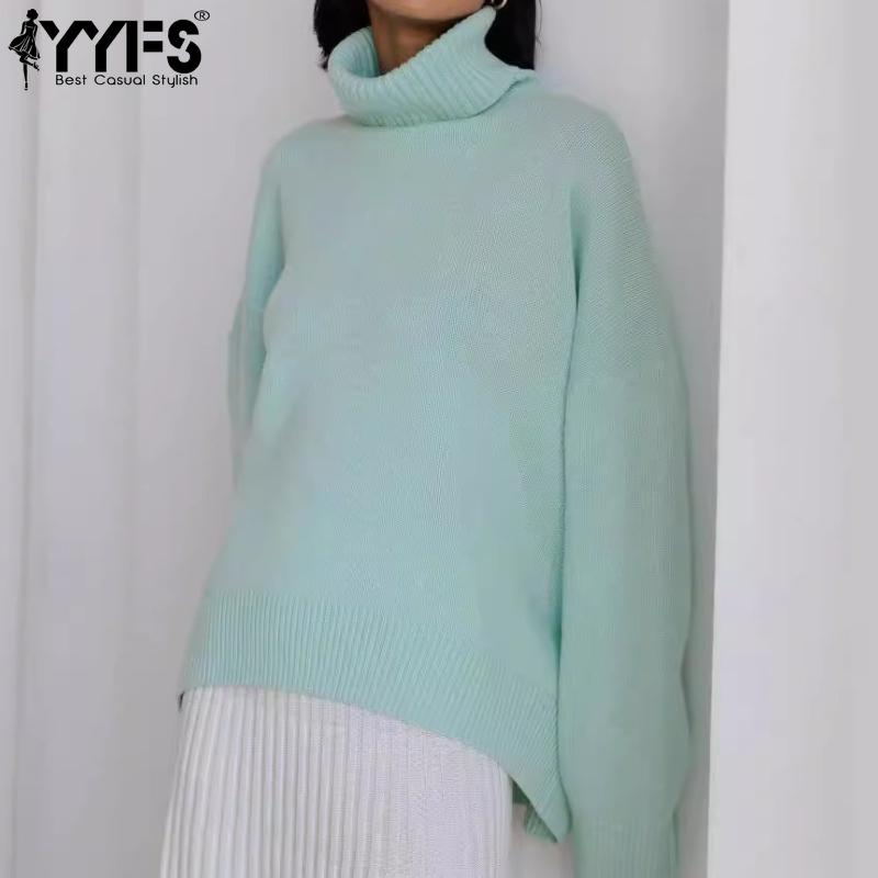 YYFS Женская мода повседневная осень-зима однотонный принт длинный рукав высокий ворот свитера