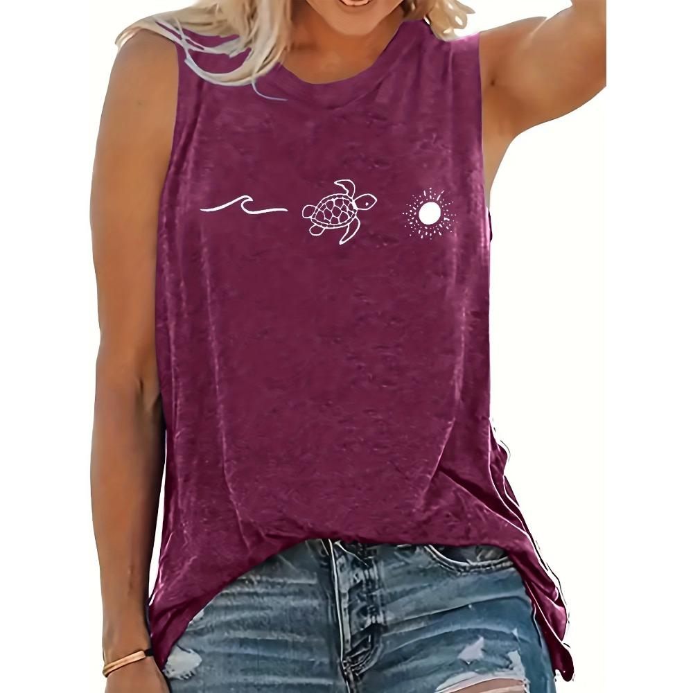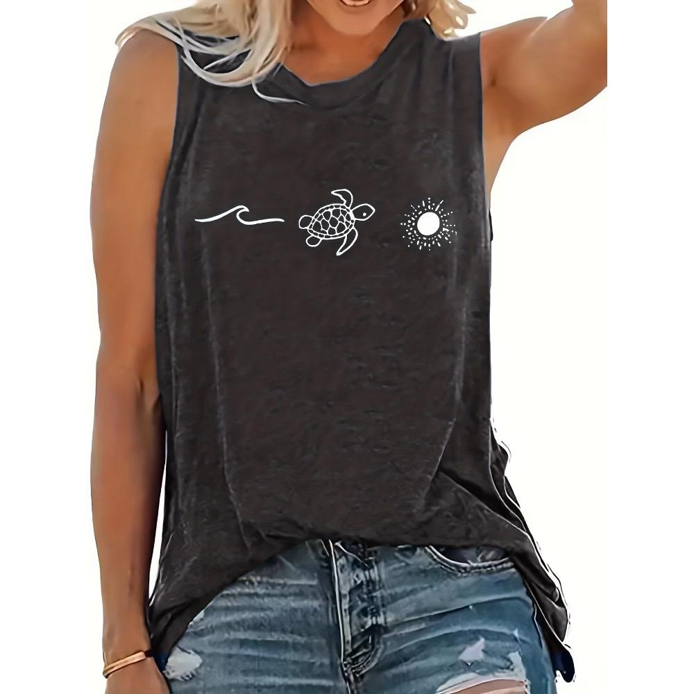 Однотонная майка с графическим принтом, повседневная майка без рукавов с круглым вырезом для весны и лета, женская одежда