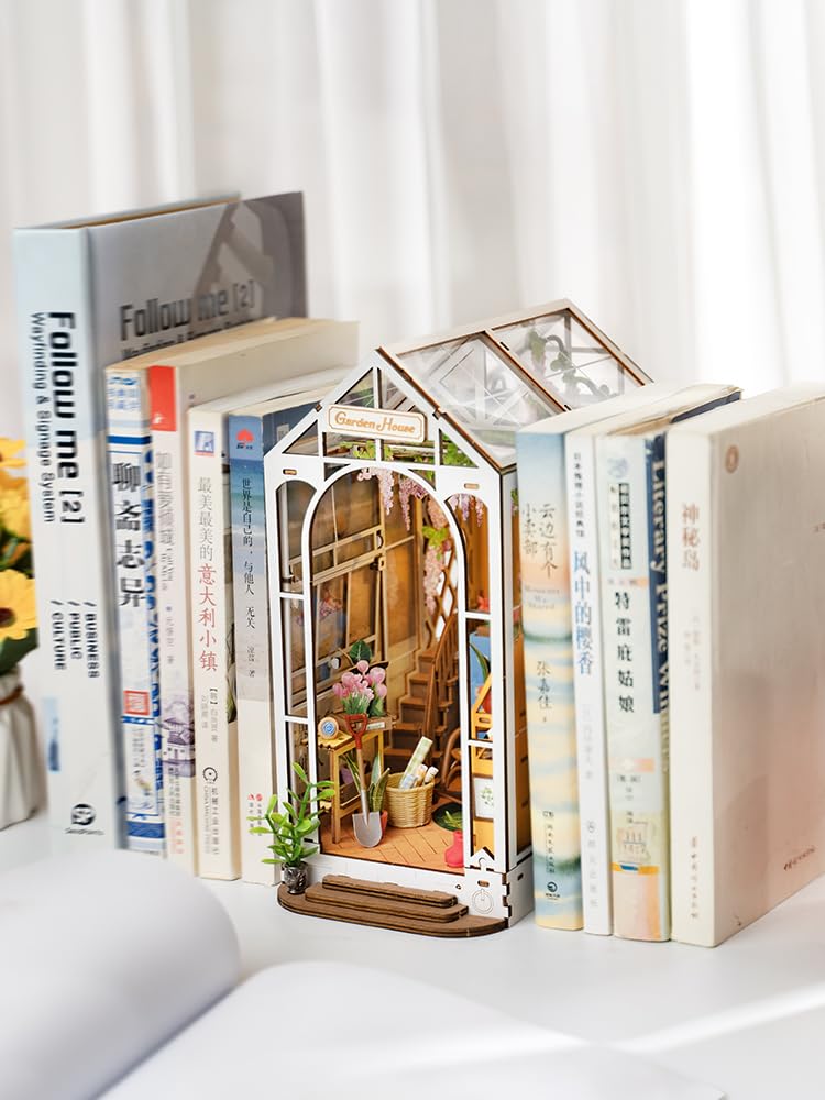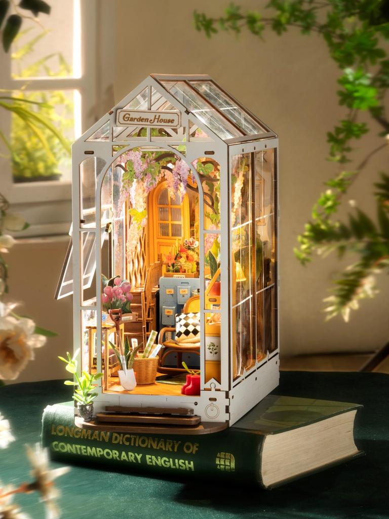 наименование товара: Миниатюрный домик Rolife, подставка для книг, деревянный 3D-пазл, номер модели: Аккумуляторы TGB06: Продано отдельно (ААА х 2) Предполагаемая сборка: 5 часов Сложность: Средний