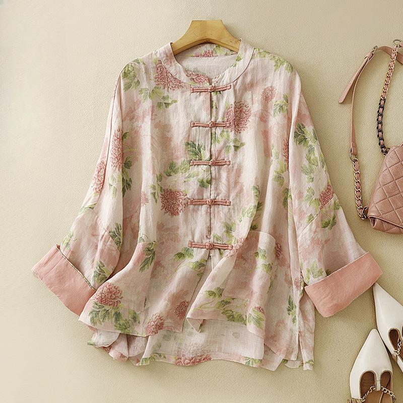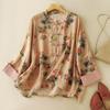 Летняя рубашка с длинными рукавами из хлопка и льна в китайском стиле в стиле ретро, с накладными пуговицами и воротником-стойкой в литературном стиле для женщин