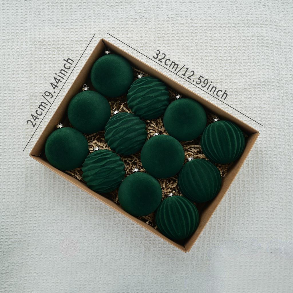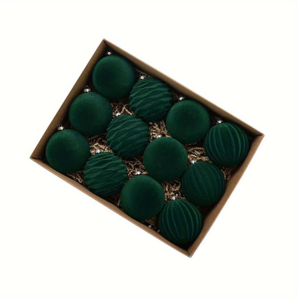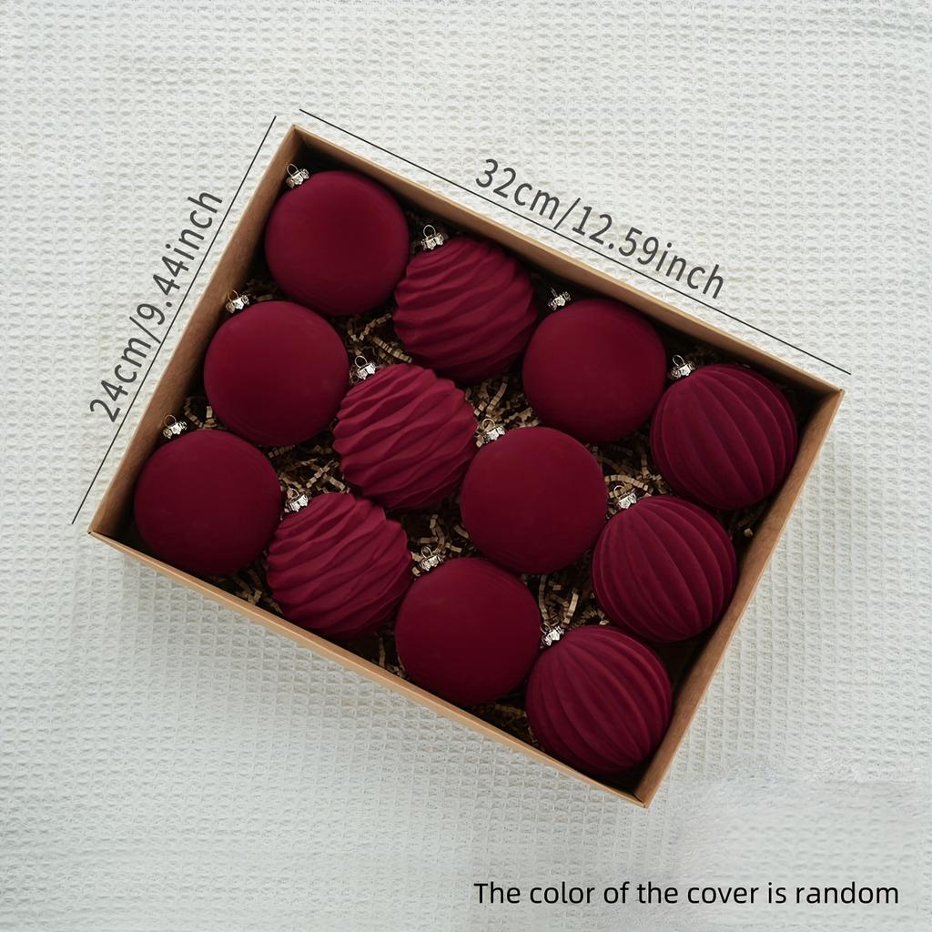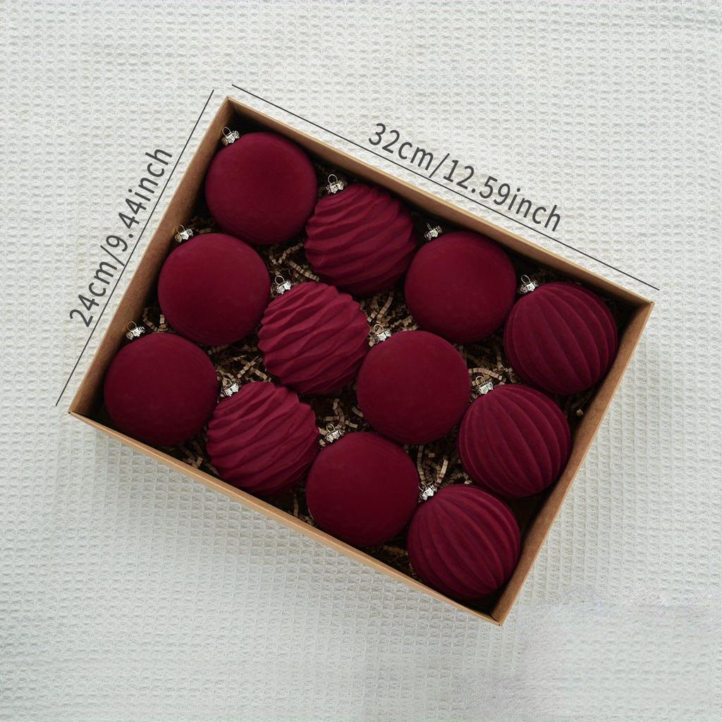Роскошные елочные украшения из 12 бархатных украшений - плюшевые подвесные шары для праздничного декора, без перьев, прочный пластик - праздничные украшения