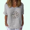 Женская модная футболка с V-образным вырезом и коротким рукавом, повседневная, из хлопка и льна, тонкий топ, женская футболка с принтом