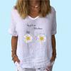 Женская модная хлопковая льняная футболка, повседневная футболка с V-образным вырезом и коротким рукавом, женская футболка с цветочным принтом — купить товар онлайн с бесплатной доставкой по всему миру!