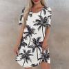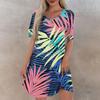 Женское повседневное и модное платье средней длины с V-образным вырезом и коротким рукавом с принтом