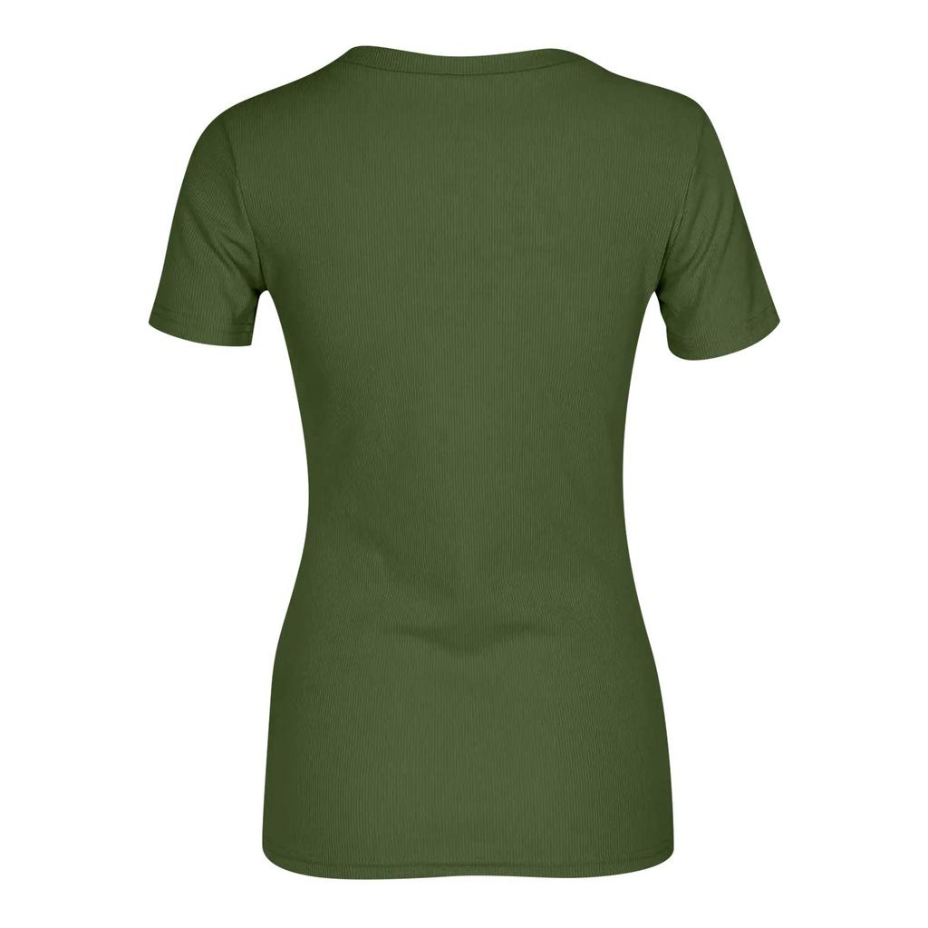 Женская узкая футболка, модная повседневная однотонная футболка с V-образным вырезом, короткий рукав, пуловер