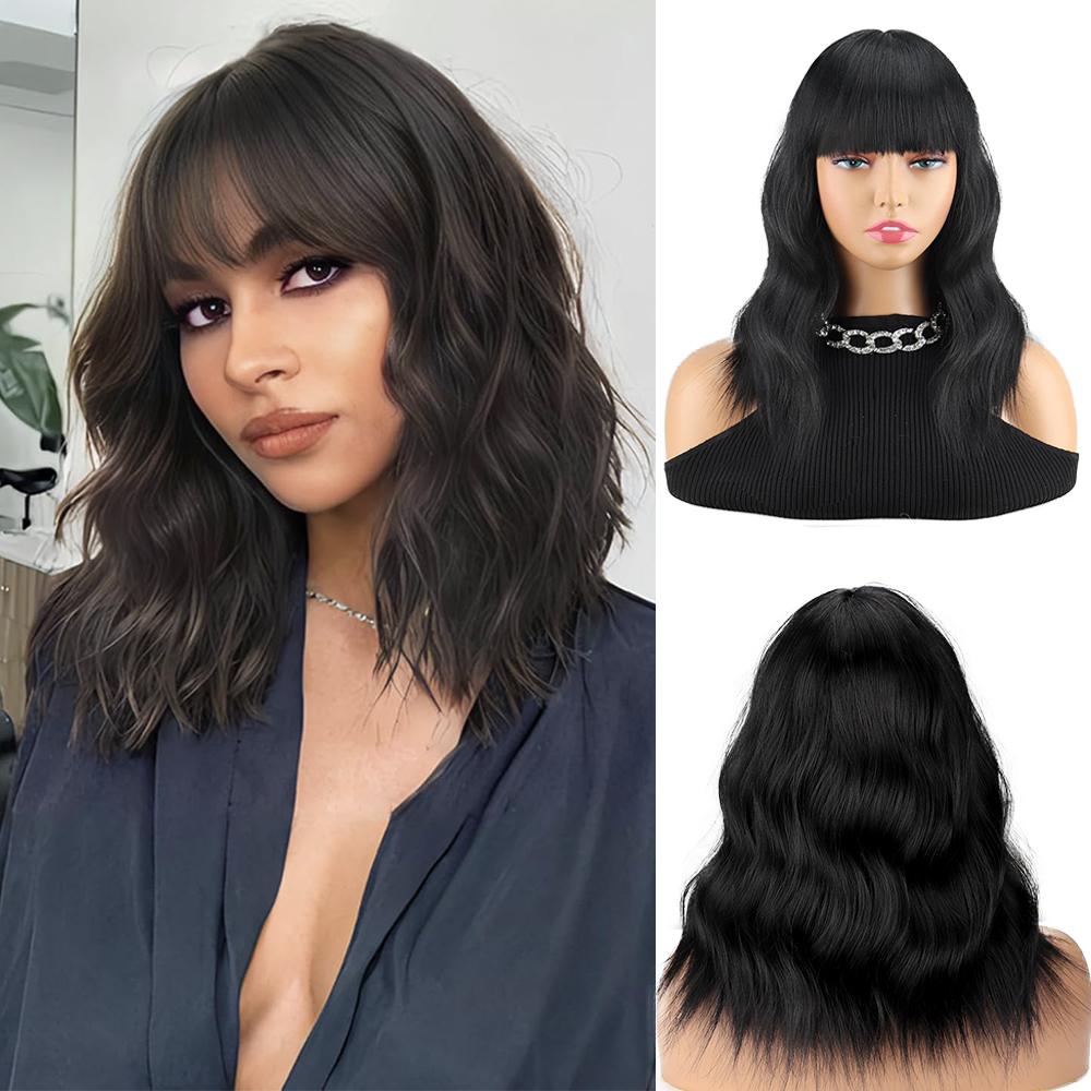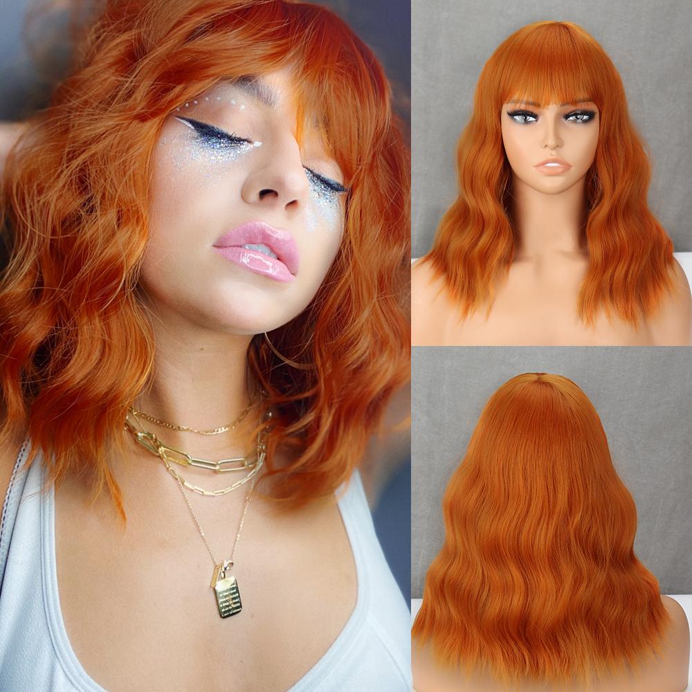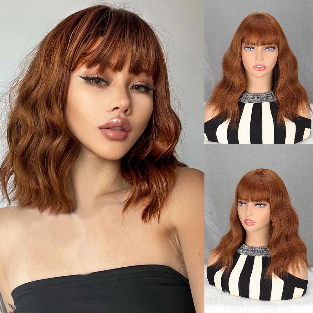 MISS WIG Синтетические короткие волосы средней длины, волнистые, натуральные парики с челкой для женщин, парик для косплея
