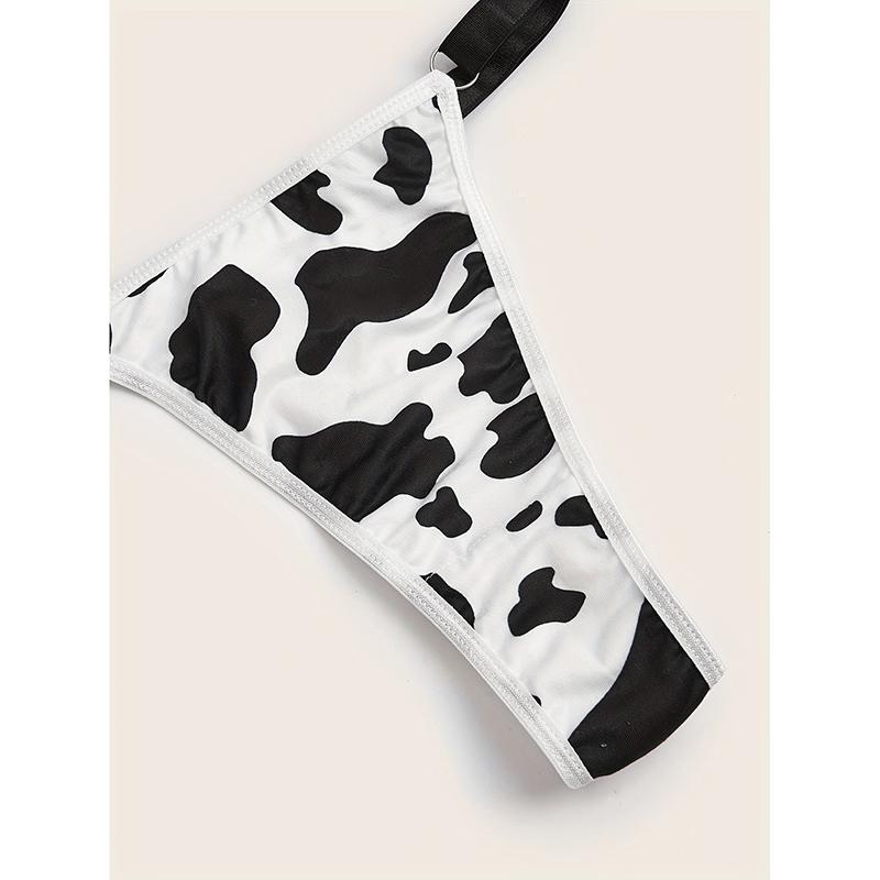 Корова Печать Вырез Цепочка Деталь Сексуальное Нижнее Белье Комплект Чокер Бюстгальтер Трусики Корсет Комбинированный Наряд Сексуальное Нижнее Белье