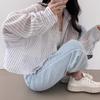 Свободная и универсальная легкая рубашка с солнцезащитным кремом в стиле ленивой моды, женская рубашка с длинными рукавами и короткими полосками в стиле ретро