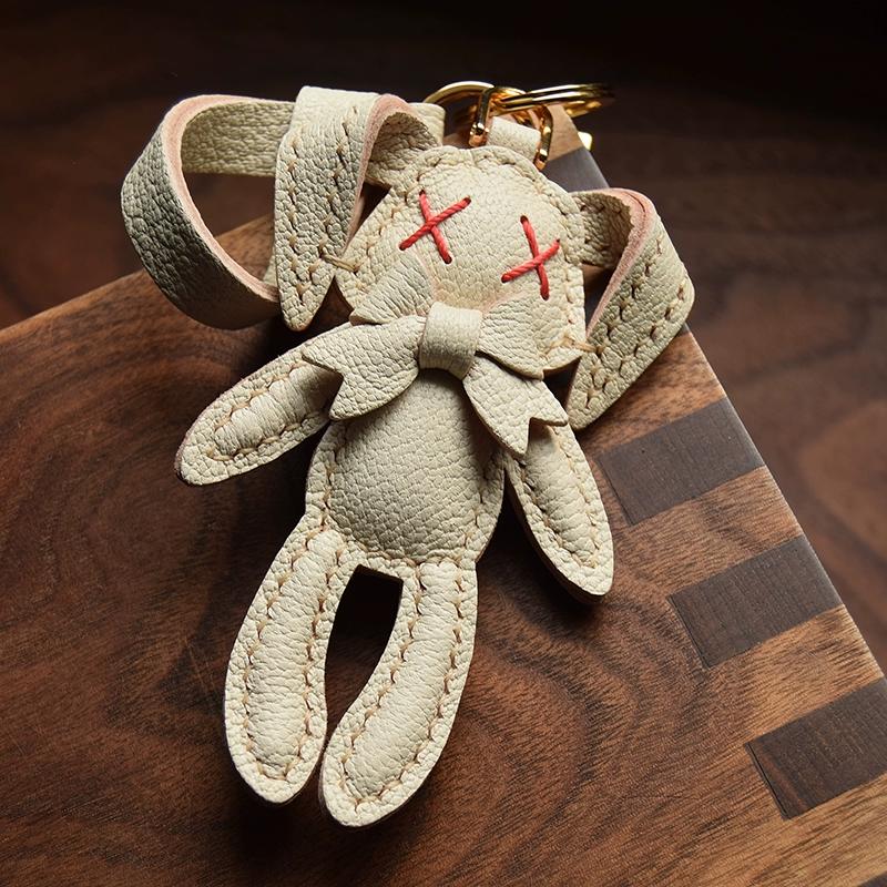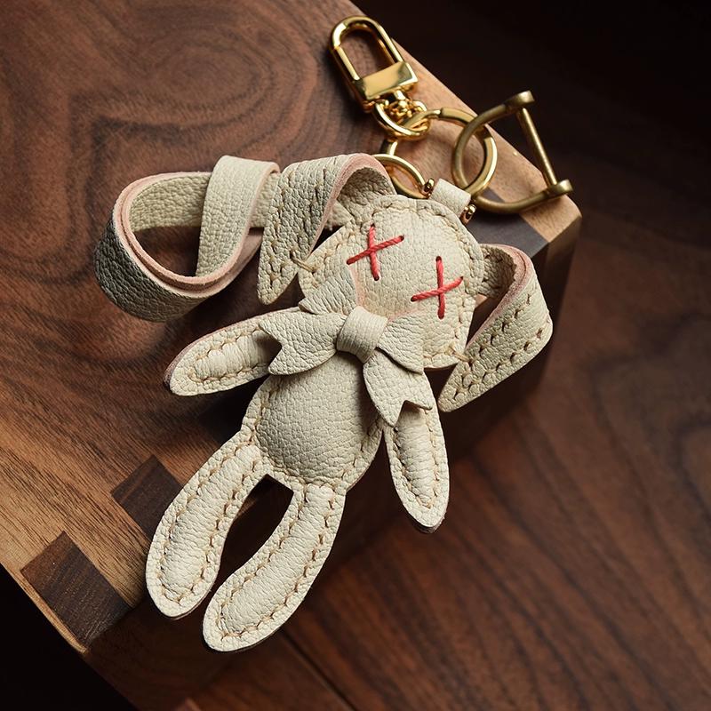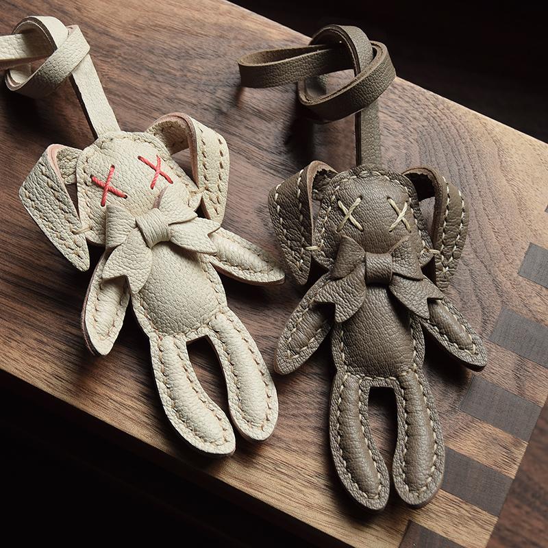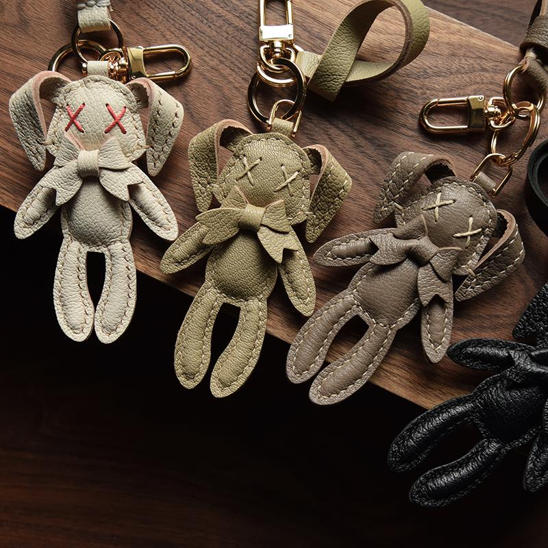 Оригинальная кукла-кролик ручной работы из кожи брелок для ключей от машины персонализированная ниша простая модная с женским брелком