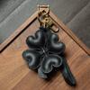 Подвеска на сумку из кожи с изображением четырехлистного клевера, сделанная вручную, для ключей от машины, простой модный и персонализированный женский брелок
