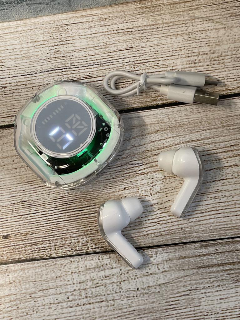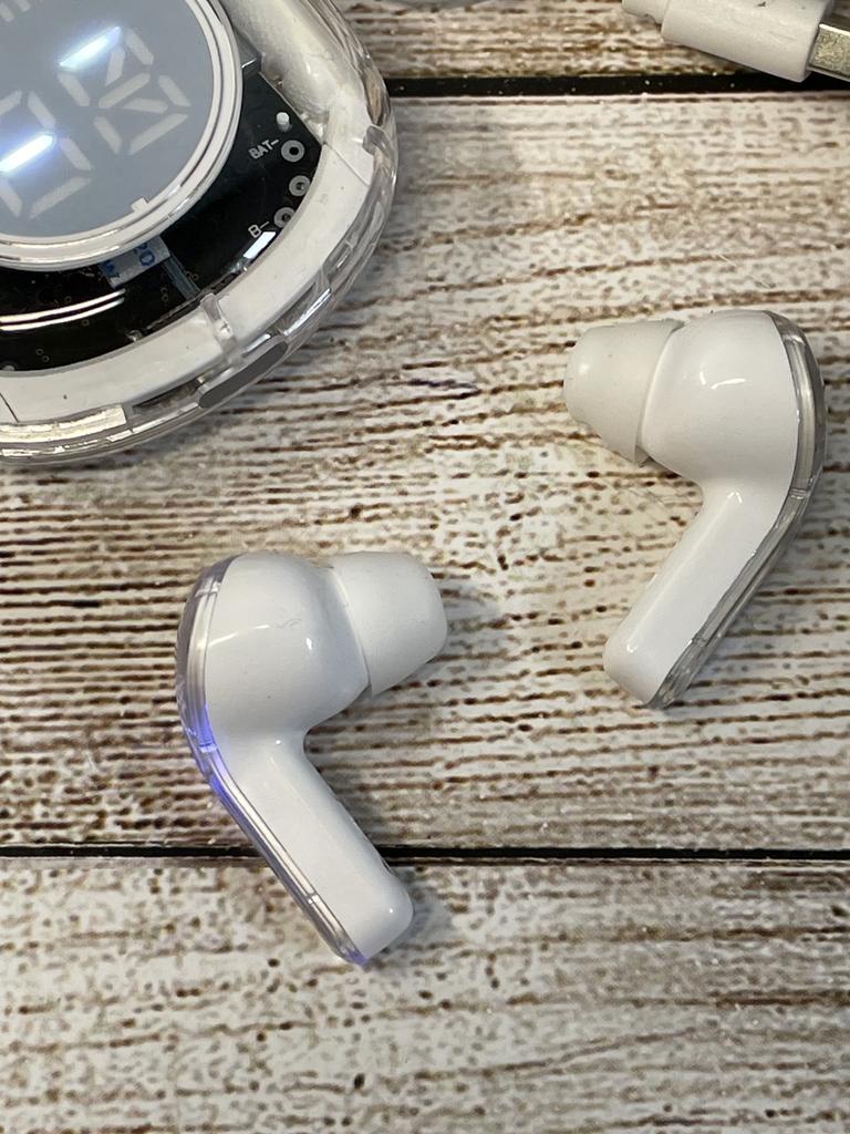 Наушники ❤️ Поставляются в стильном прозрачном кейсе, который сразу привлекает внимание. Корпус кейса выполнен из глянцевого пластика с цифровым дисплеем, показывающим текущий уровень заряда. Сами наушники имеют эргономичную форму с удлиненными ножками. Кейс компактный, лёгкий и отлично помещается в небольшой карман, что делает их удобными для повседневного ношения. Звук достаточно хороший, с высокой детализацией, также слышатся басы. Управление осуществляется с помощью удерживаний и тапов по сенсорной части наушника. Это позволяет не только управлять воспроизведением (пауза, переключение треков, регулировка громкости) не используя смартфон напрямую. Чувствительность сенсоров хорошая, всё работает как надо. Наушники используют Bluetooth версии 5.4. Это обеспечивает стабильное соединение на расстоянии до 10 метров, низкую задержку и энергоэффективность. Совместимы с большинством устройств на iOS и Android. Процесс сопряжения прост: достаточно открыть кейс, и наушники автоматически перейдут в режим поиска. Удачных покупок ❤️ Ваша Вика 🙂