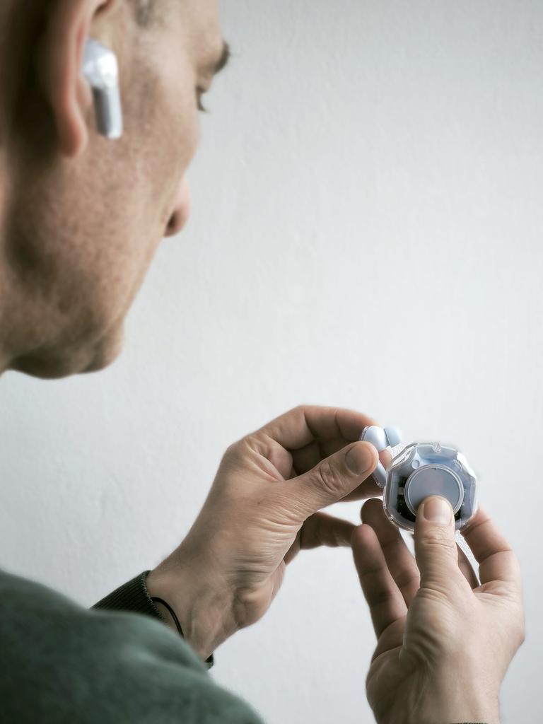 Полностью беспроводные наушники с LED-дисплеем заряда батареи и эргономичным дизайном