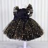Милое платье принцессы для маленьких девочек, блестящее пышное платье для новорожденных девочек на первый день рождения, пышная свадебная одежда для младенцев