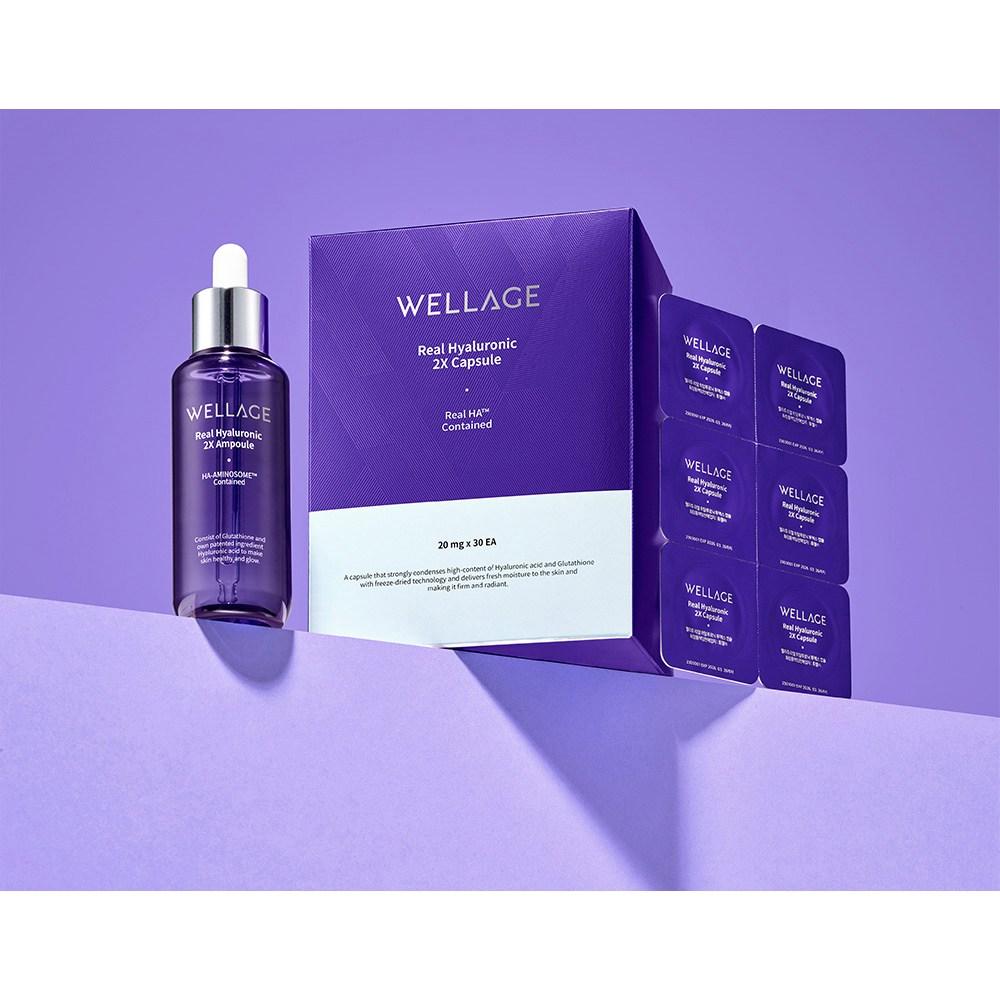 Wellage Капсулы 60 порций + Ампула 70 мл Настоящая гиалуроновая 2X Лиофилизированная гиалуроновая кислота