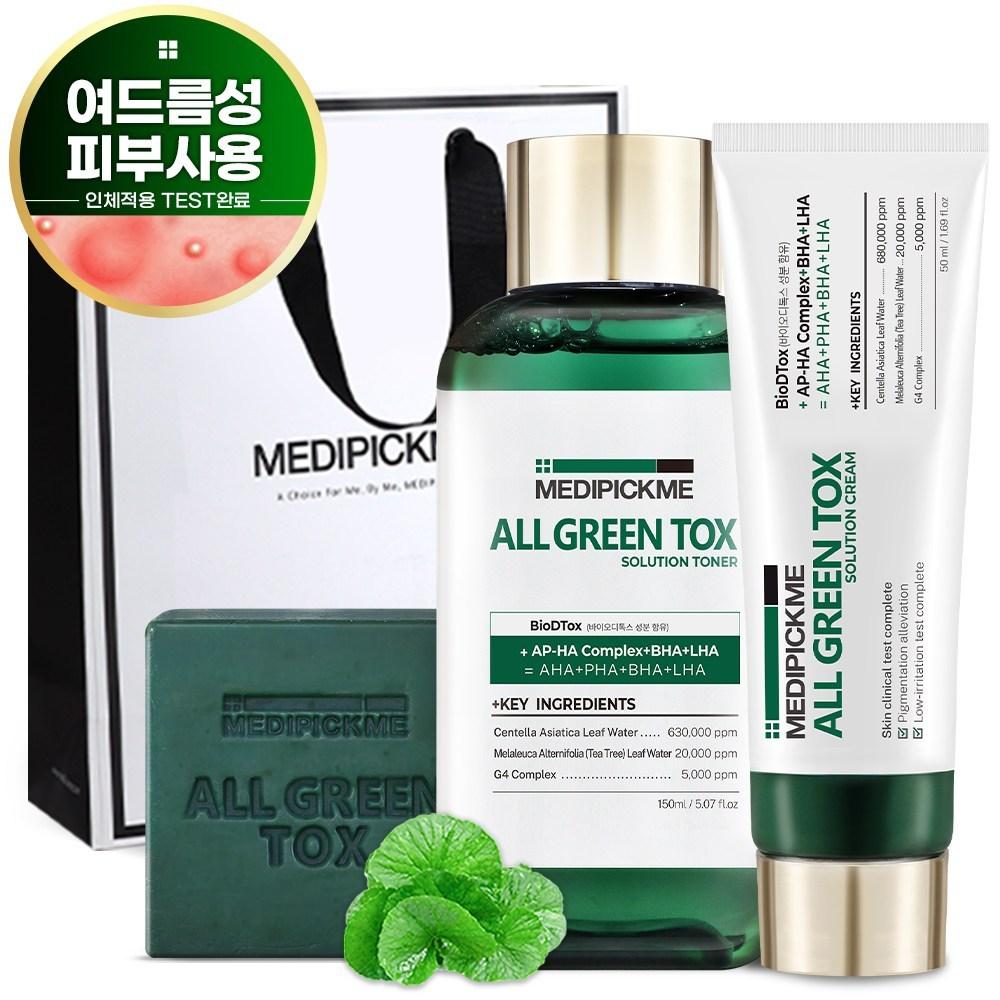 Набор из 3-х предметов для лечения токсинов Medipick Me All Green (Очищающее мыло + Тоник + Крем) Подходит для использования на коже, склонной к акне. Cica Tea Tree BHA
