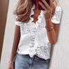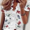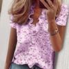 Модные рубашки с коротким рукавом и V-образным вырезом больших размеров для женщин, летние топы, элегантные повседневные свободные блузки с цветочным принтом, женская приталенная рубашка на пуговицах 26379