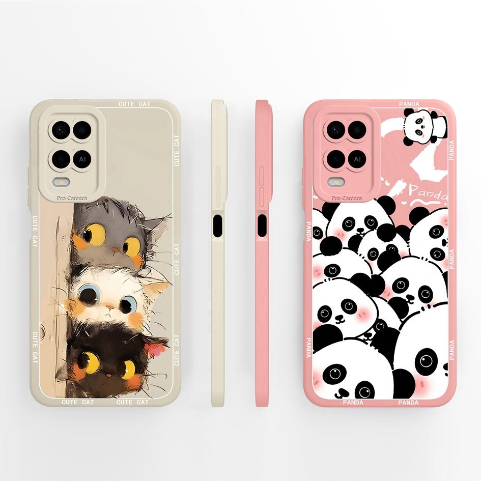 Для OPPO A54 A54S A55 A56 A57 A57E A57S A58 A72 A73 A74 A75 A76 Чехлы для телефонов с милым рисунком панды Мягкие жидкие силиконовые противоударные чехлы для OPPO Shell