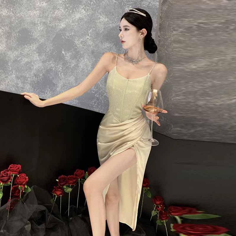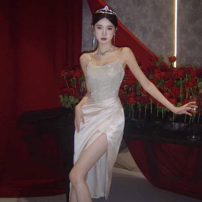 Новое женское темпераментное платье в стиле светской львицы с блестками и разрезами на подтяжках
