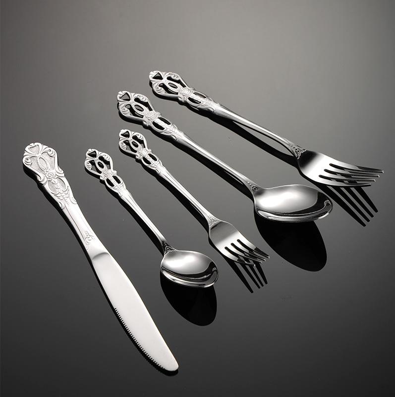 Нож, вилка и ложка для западной кухни из нержавеющей стали серии Royal Court с полой ручкой. Подарочный набор из 5 предметов. Ложка для основных блюд.