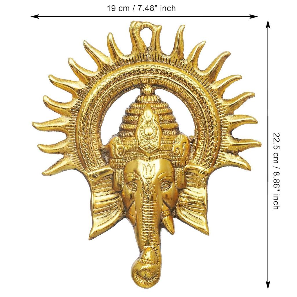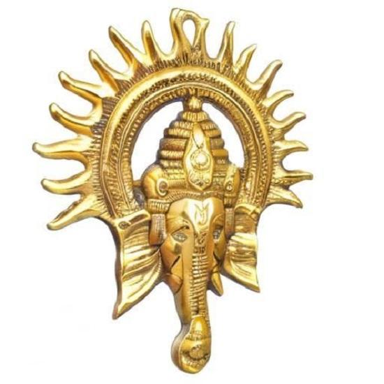 Золотое металлическое настенное украшение в виде солнца Ганеши - Статуя Господа Ганеши - Декоративное украшение для декора стен - Элементы декора Дивали для домашнего декора