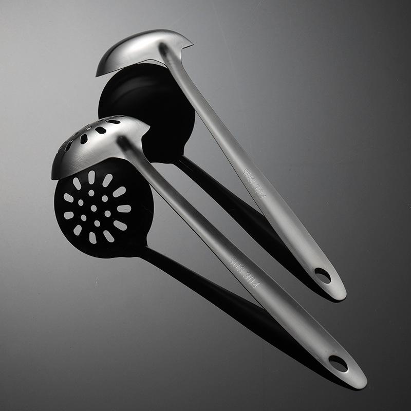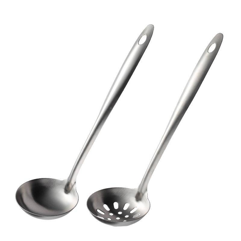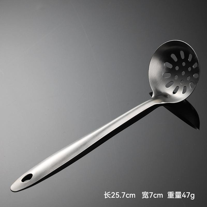 Дуршлаг из нержавеющей стали 304 с тонкой оболочкой для супа, отшлифованный, маленькая ложка для горячих кастрюль, большая ручка с кончиком 1 мм толщиной