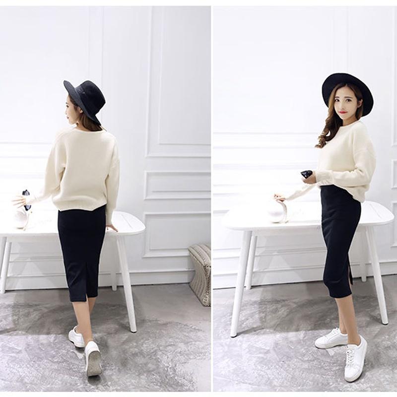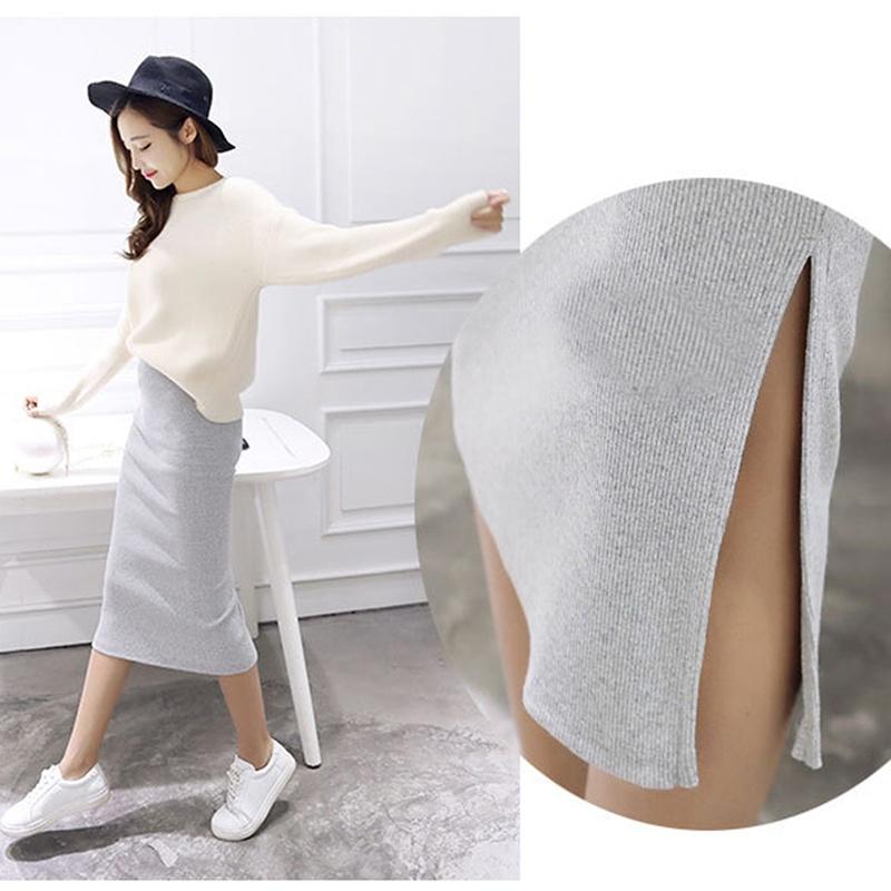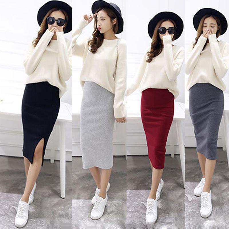 Женская мода Юбки Пакет Хип Сплит Чистый цвет Трикотажная хлопковая тонкая юбка