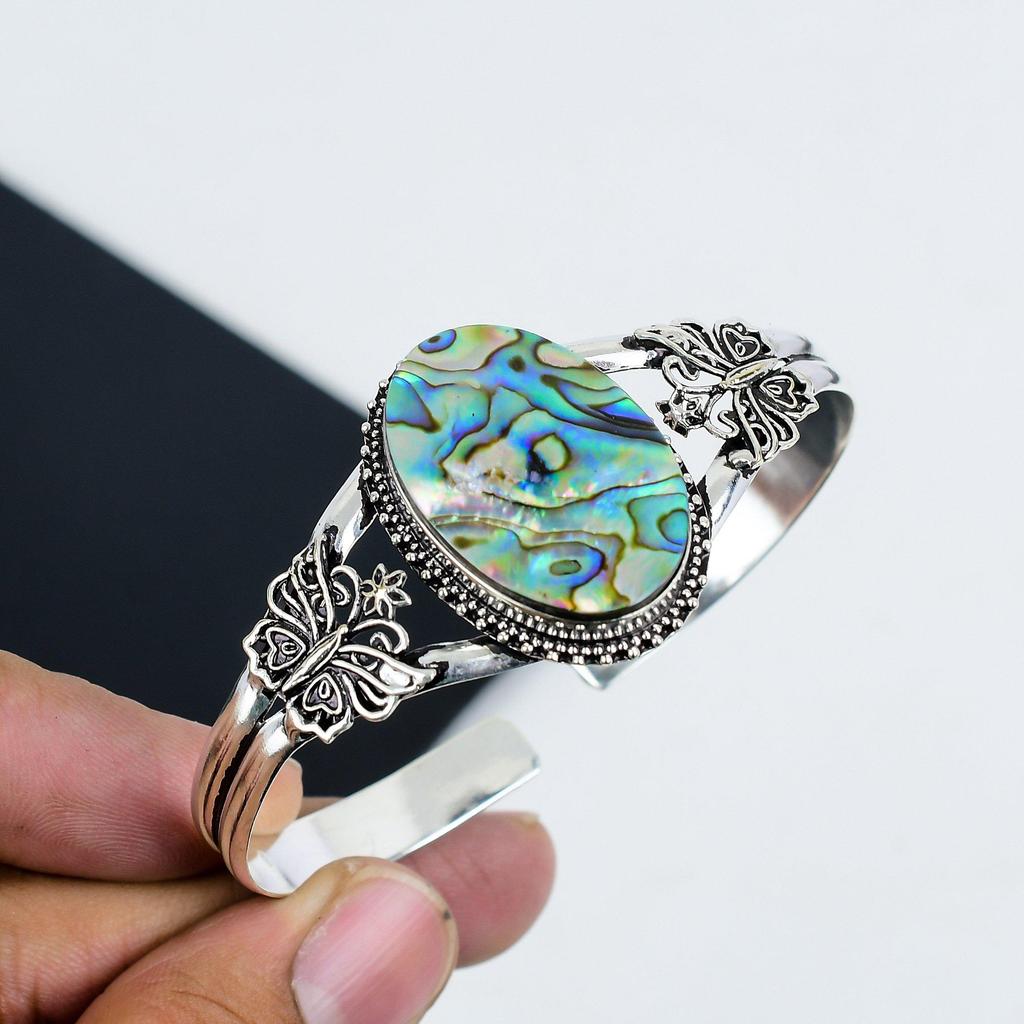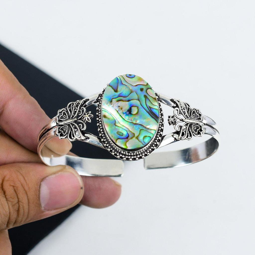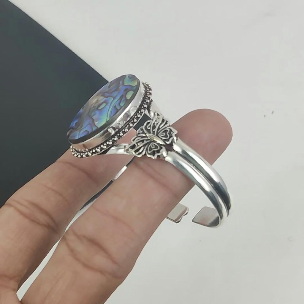 Натуральный драгоценный камень из ракушки абалон, браслет-манжета из стерлингового серебра 925 пробы, браслет из ракушки абалон, для жены, браслет унисекс, подарки на День матери