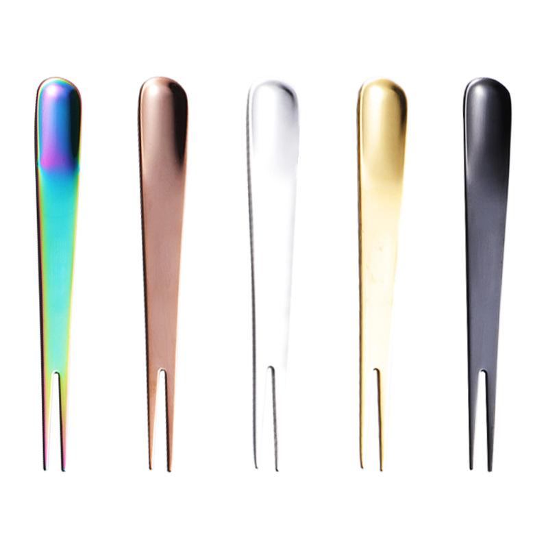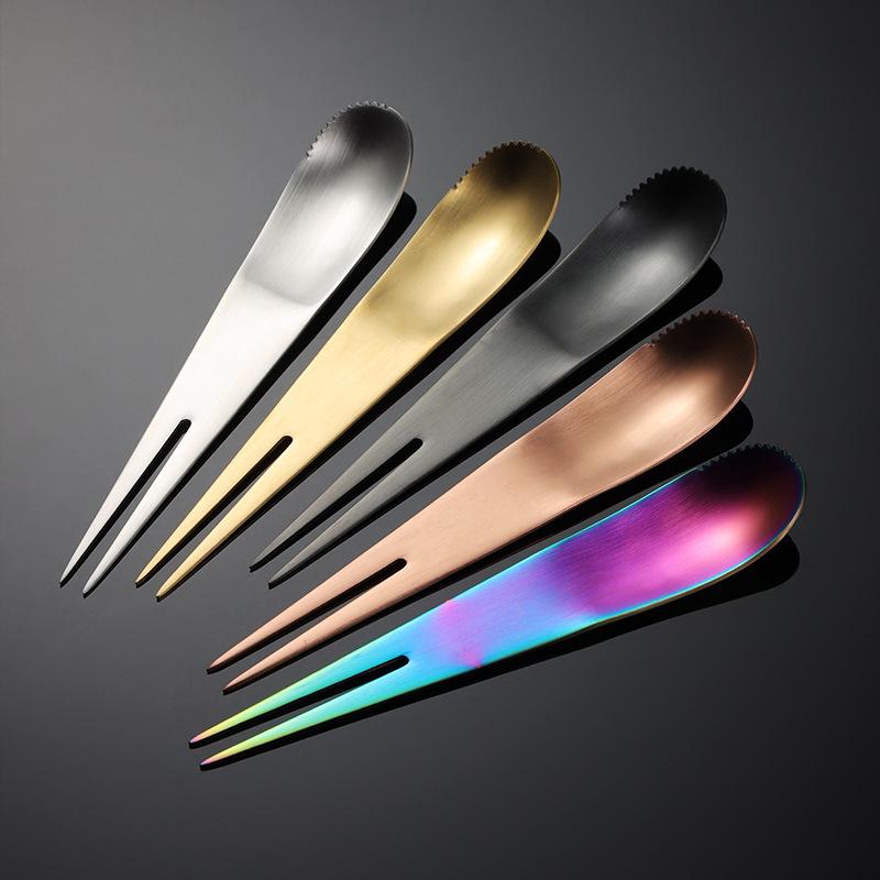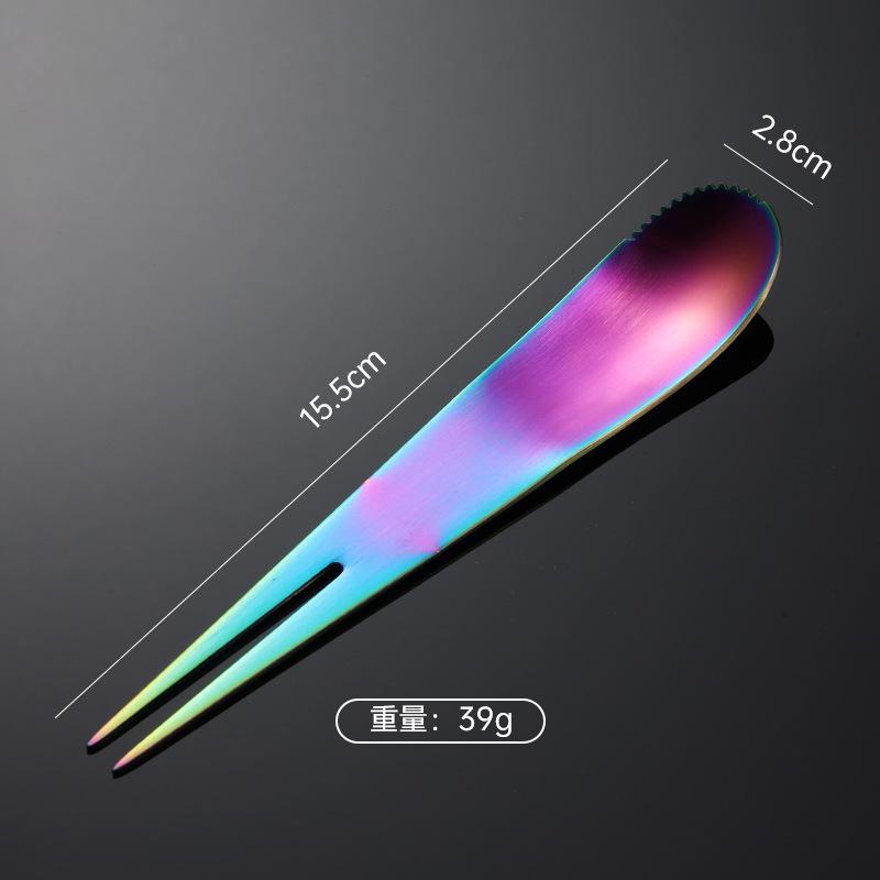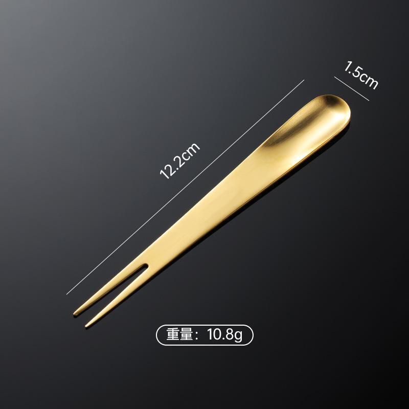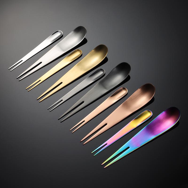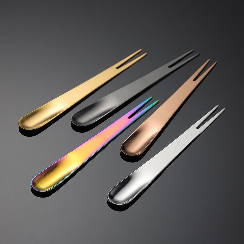 Вилка для фруктов двойного назначения из нержавеющей стали 304, интегрированная вилка и ложка для мороженого, палочка для лунного пирога, многоцветный подарочный комплект с титановым покрытием PVD