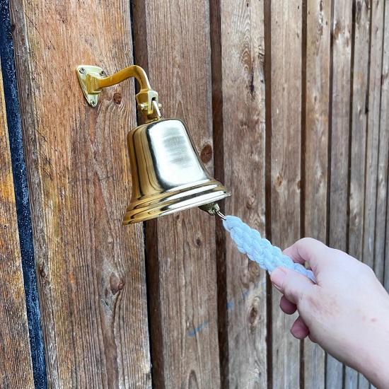 Этот колокольчик создает громкий, глубокий звук, привлекающий внимание, и полезен в качестве акцента для домашнего бара в качестве звонка для приема последних заказов.. Звон колокольчика становится приятным благодаря простой веревочной ручке, что делает его не только полезным, но и развлекательным.