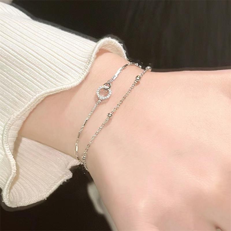 Серебряный геометрический двойной круговой браслет для женщин простой двухслойный нерегулярный браслет-цепочка ювелирные изделия аксессуары подарок