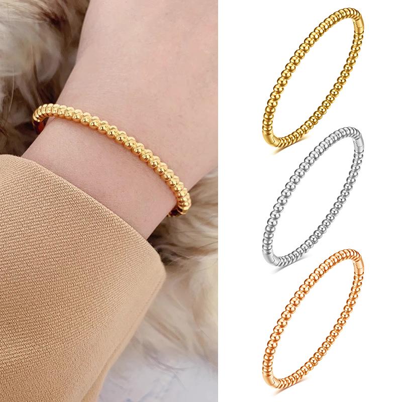 Браслет-бенгл из нержавеющей стали, открывающийся, с гладкими круглыми бусинами, для подарка на годовщину, женское украшение