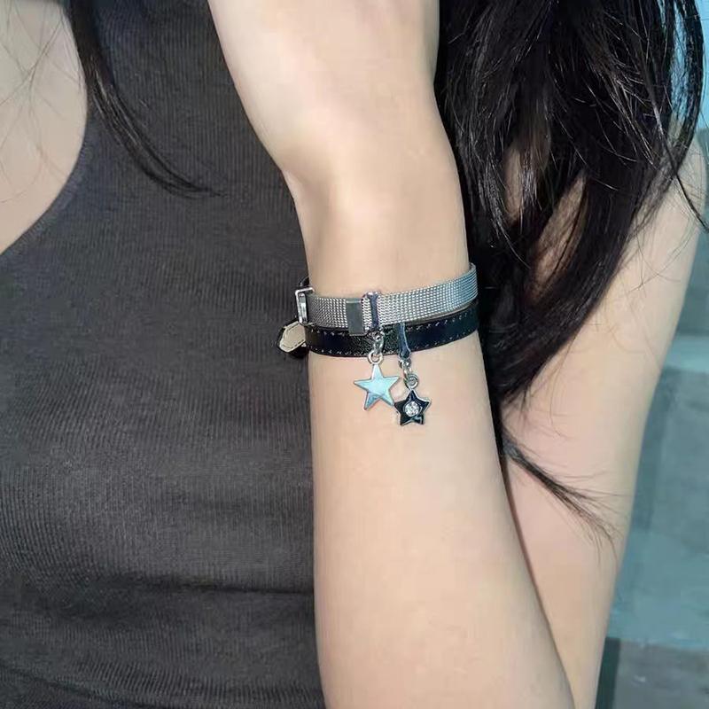 Y2K Girls Star Подвеска Регулируемый Парный Браслет 2023 Трендовый Дизайн Титан Сталь Кожаные Браслеты Для Женщин Мужчин Ювелирные Изделия