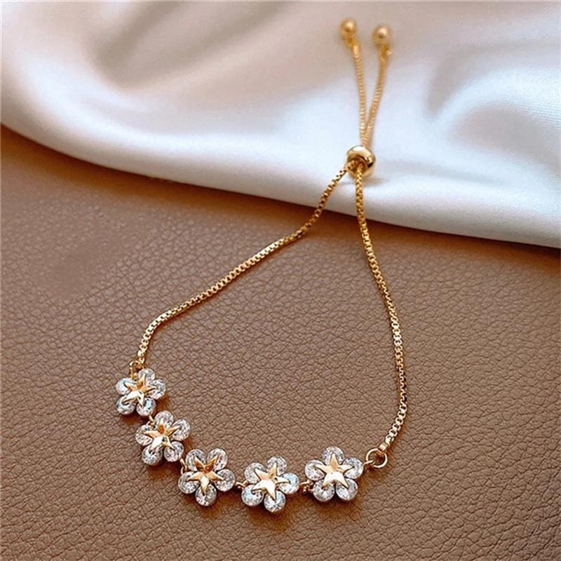 Элегантный цветочный браслет Push-Pull, легкий роскошный браслет с подвесками, регулируемый ювелирный подарок на день рождения для девочек и женщин
