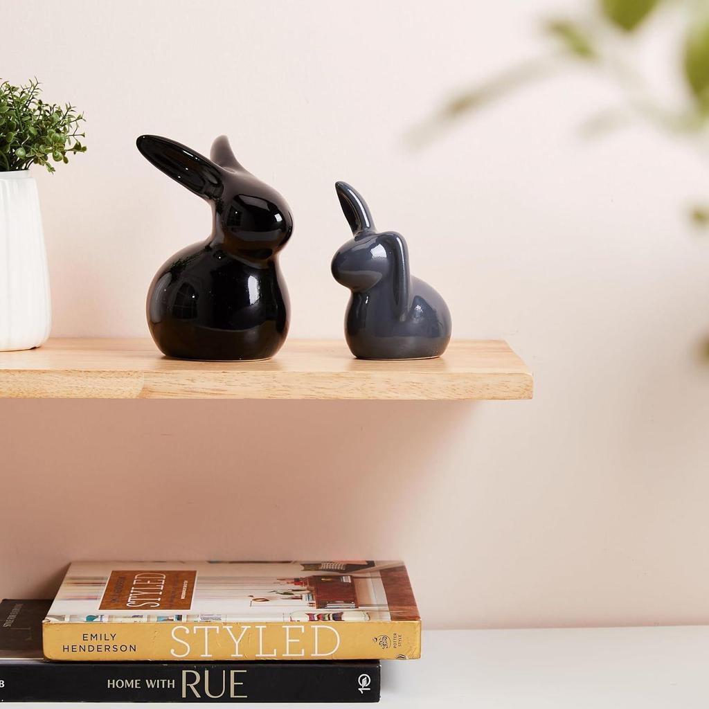 Керамические фигурки кроликов для домашнего декора (Набор из 2 шт., черный и серый)