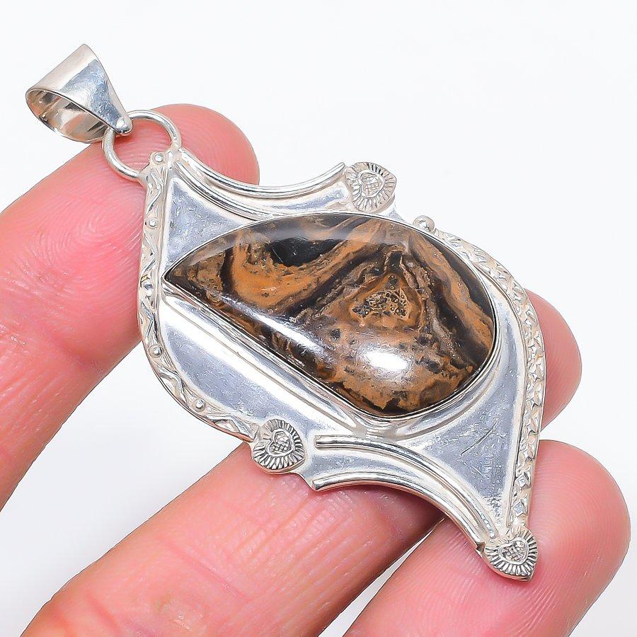 Строматолит Ручная работа Серебро 925 пробы Ювелирная подвеска 2,76"