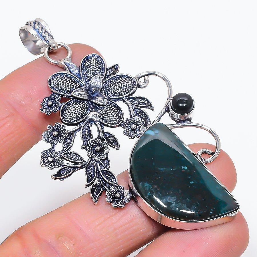 Подвеска из серебра 925 пробы, моховой агат, оникс, ручная работа, 3,03 дюйма