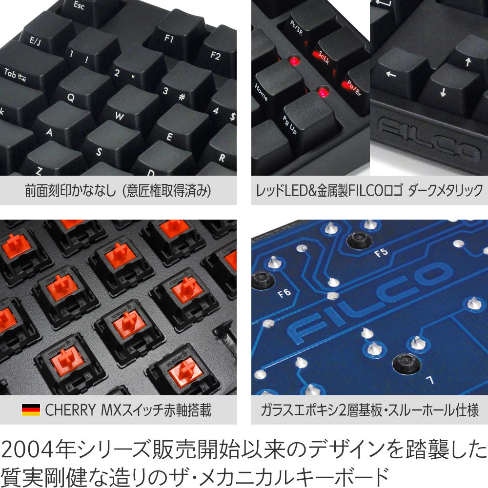 FILCO Majestouch BLACK 91 Red Axis 91 Keys Japanese Printing Compatible with both USB PS2 Rollover Compatible German CherryMX Red Axis Switch