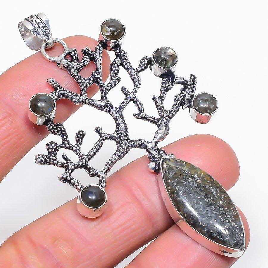 Кварц Лодолит, Лабрадорит Ручная работа Серебро 925 пробы Подвеска 3.15"