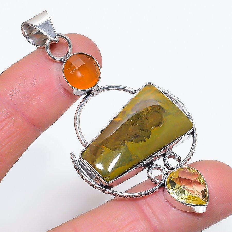Океанический Яшма, Сердолик Ручная работа Ювелирная подвеска из стерлингового серебра 925 пробы 2,76"