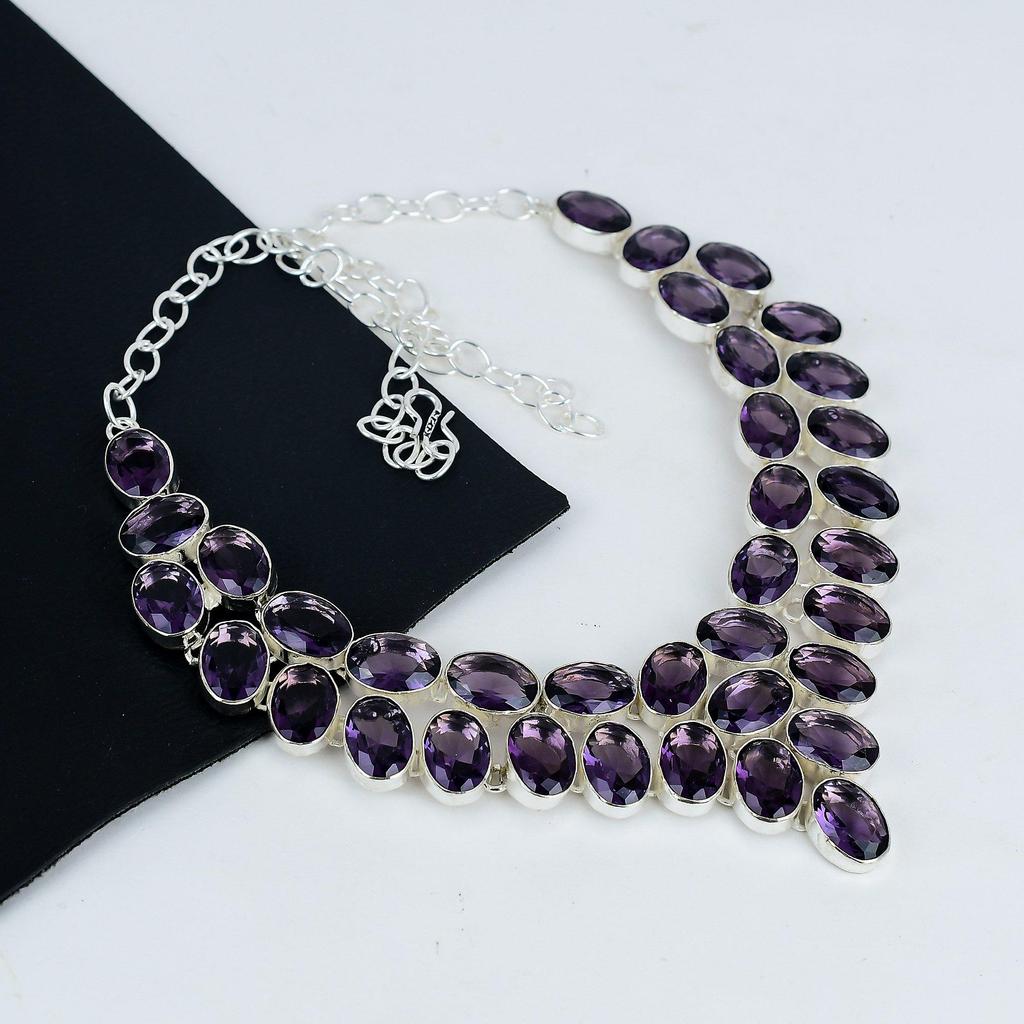 Красивое ожерелье из серебра 925 пробы с аметистом и драгоценными камнями, аметистовое серебряное ожерелье для жены, ожерелье унисекс, подарок на ватный тампон