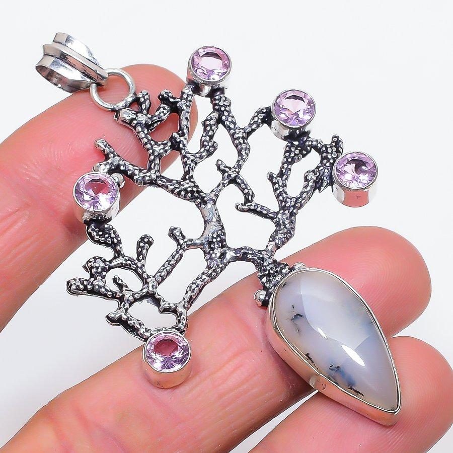 Русский Дендрит, Кунцит Ручной работы Подвеска из серебра 925 пробы 2,99"