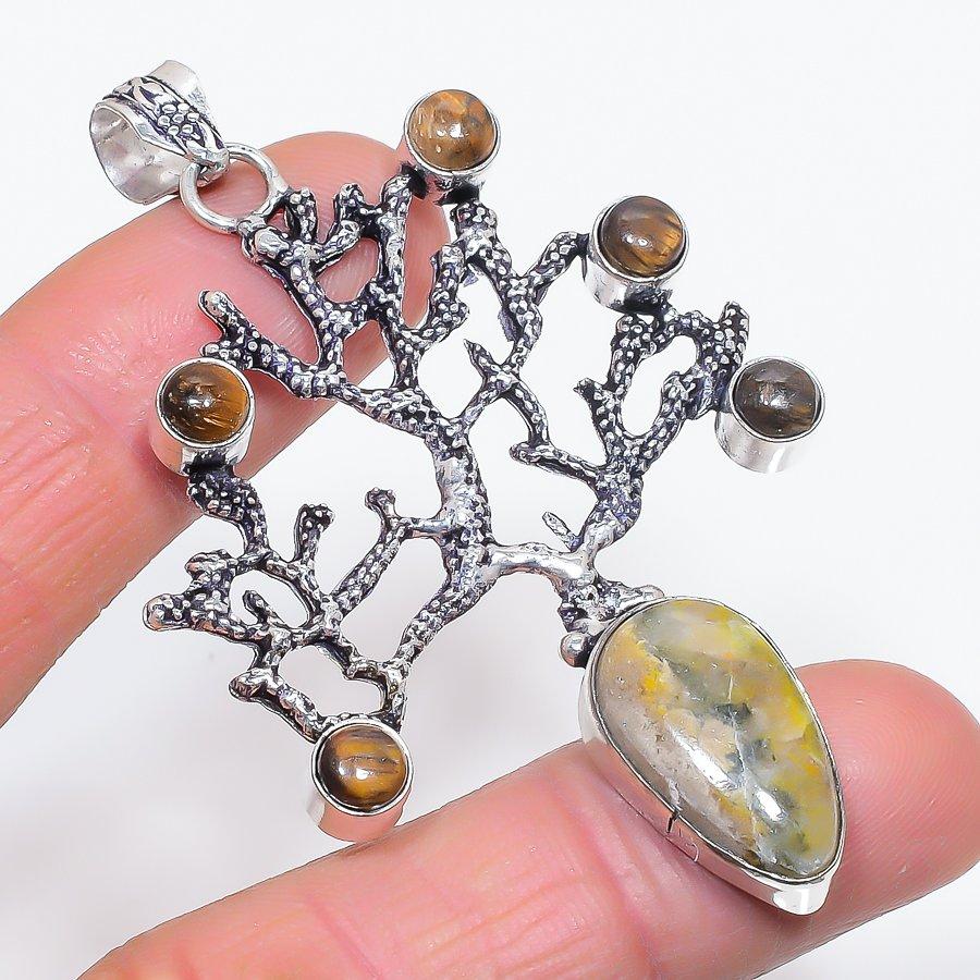 Шмель Яшма, Тигровый глаз Ручная работа Подвеска из стерлингового серебра 925 пробы 2,88"
