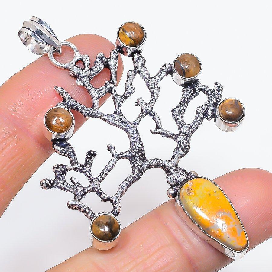 Шмель Яшма, Тигровый глаз Ручная работа Подвеска из стерлингового серебра 925 пробы 2,80"