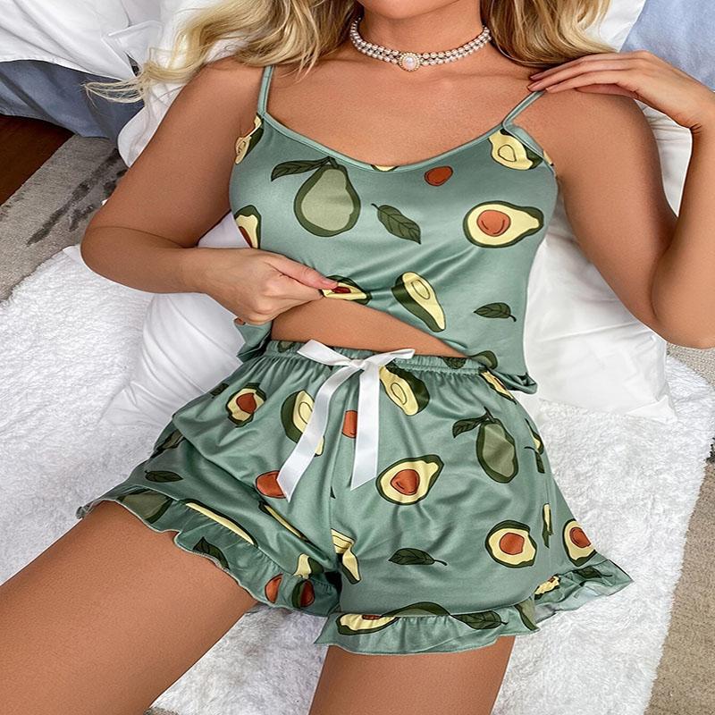 2 шт./компл. женская пижама с принтом повседневная ночная рубашка с лямкой на шее для девочек домашняя одежда легко чистится зеленая повседневная одежда для сна с подтяжками — купить товар онлайн с бесплатной доставкой по всему миру!