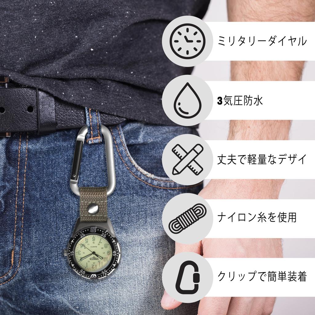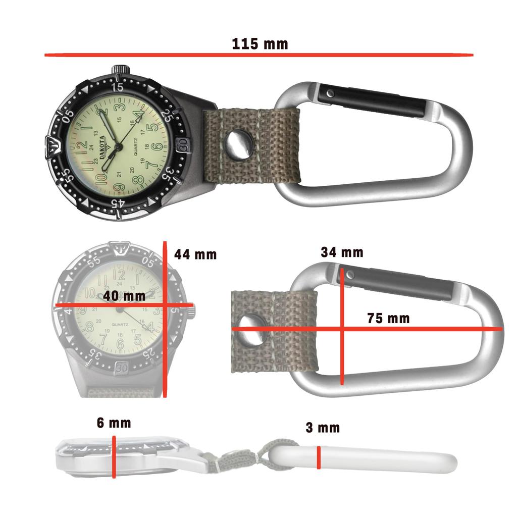 Dakota Карабинные часы Водонепроницаемые Легкие Светящиеся Стрелки Нейлоновый Ремешок Для Активного Отдыха Кемпинг Альпинизм Путешествия Карманные Часы